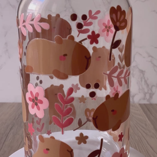 capybara glass cup | cute animal iced coffee cup | UV DTF capybara tumbler | libbey animal glass | pastel flower drinkware | cozy aesthetic cup | reusable iced capybara glass | eco-friendly animal lover cup | cottagecore animal tumbler | high-quality uv-dtf print