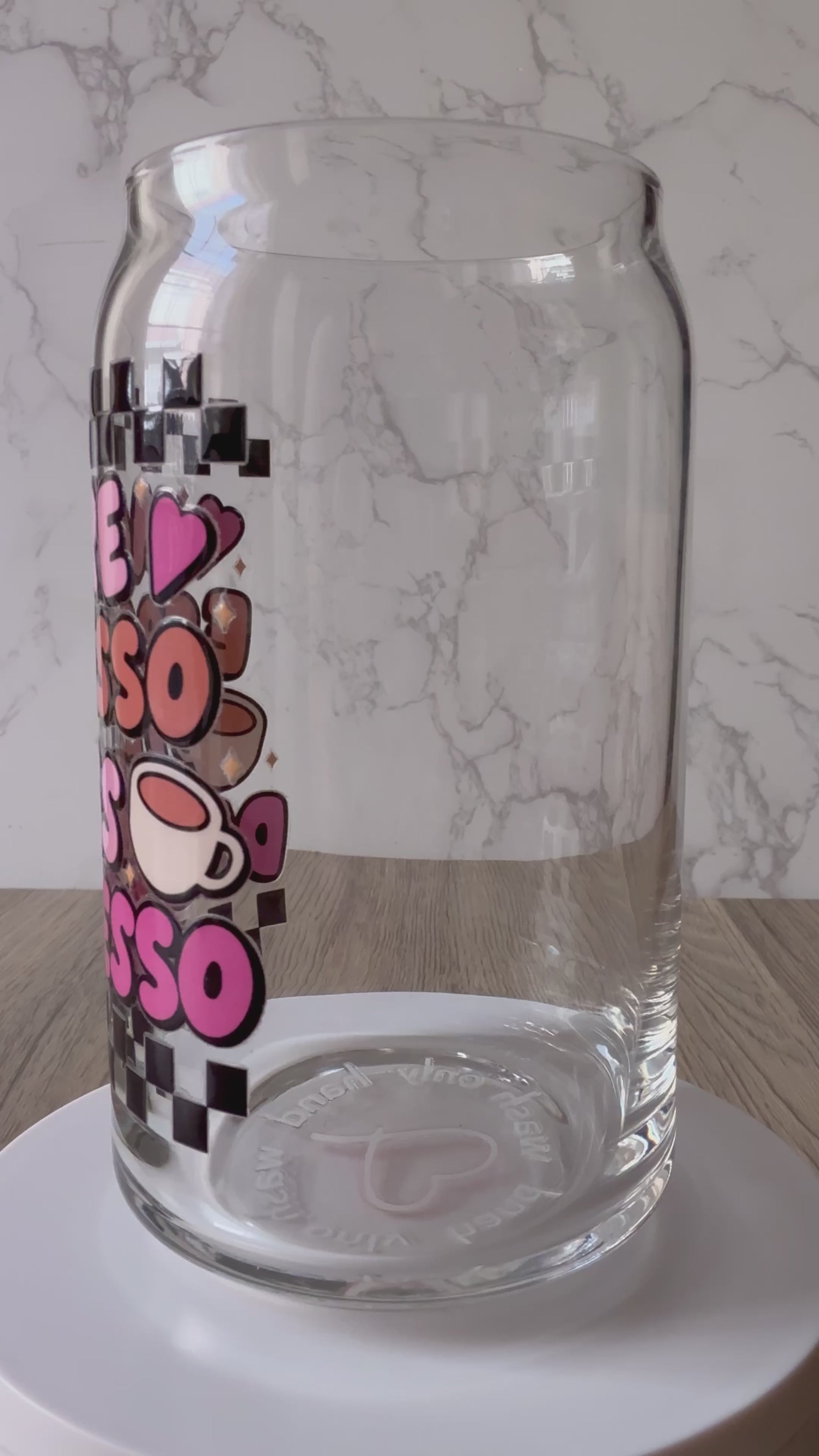 Because some days just need a little extra shot of motivation — this Libbey glass iced cup features a premium UV DTF wrap design that says “Less Depresso, More Espresso” in a playful, bold font. It's the perfect pick-me-up for coffee lovers with a sense of humor and a need for caffeine.