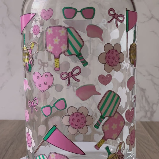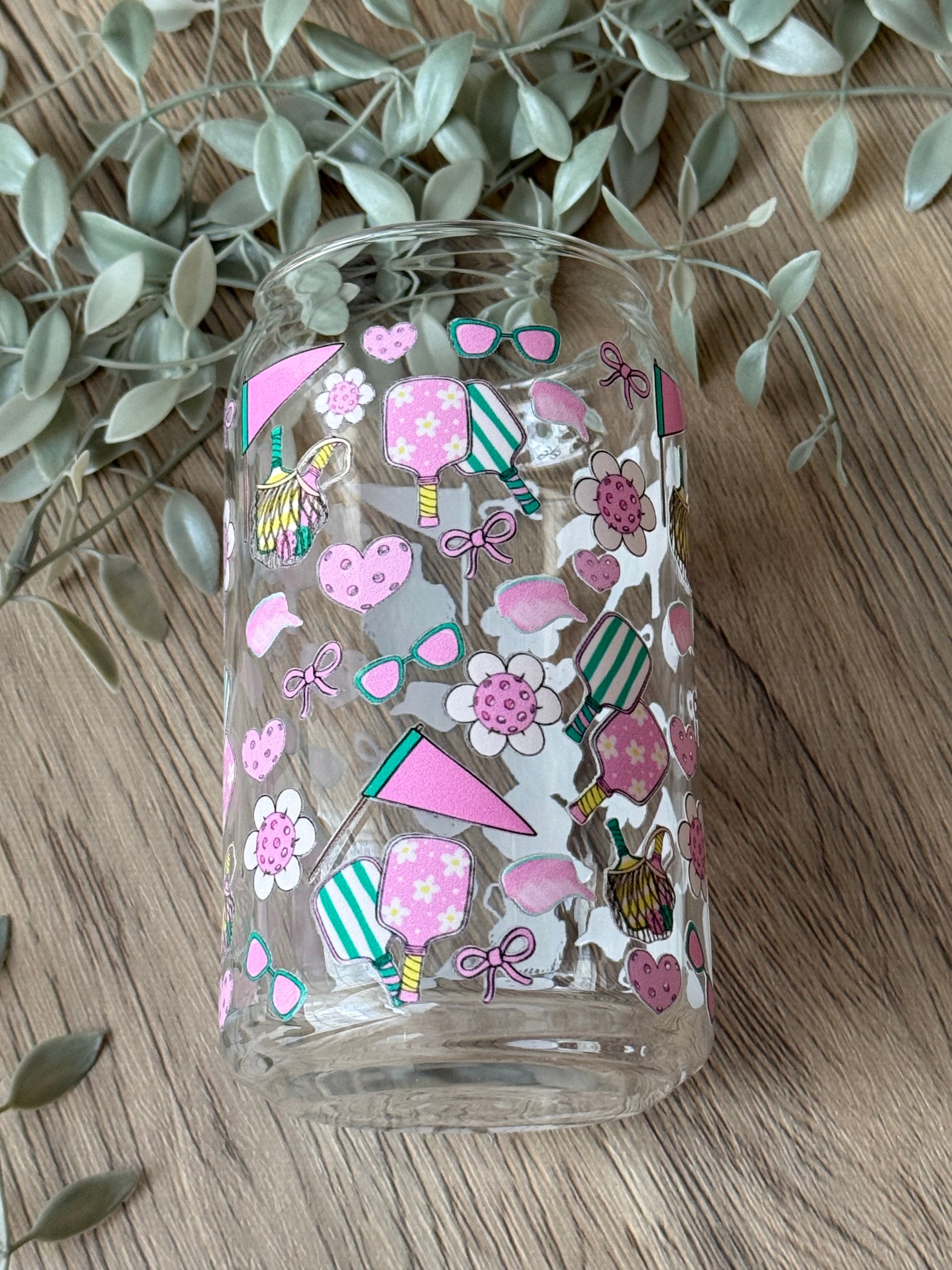reusable iced coffee cup | libbey glass cup | UV DTF pickleball cup | pickleball iced coffee tumbler | sports themed glass cup | pickleball lover gift | iced coffee glass with paddles | athletic drinkware | pickleball player cup | high-quality uv-dtf print