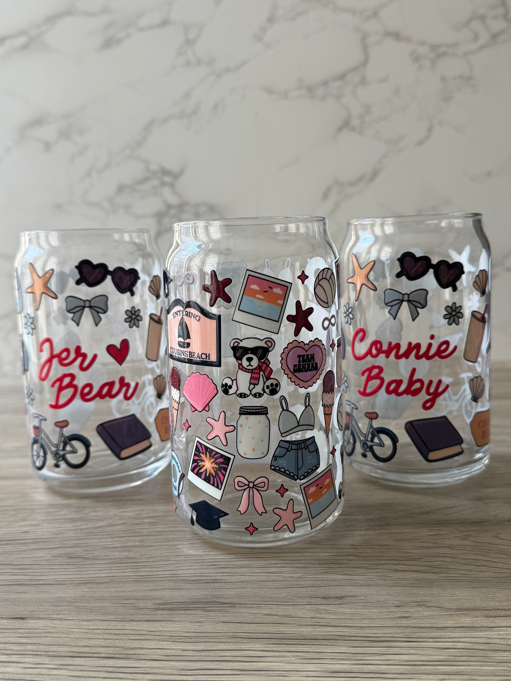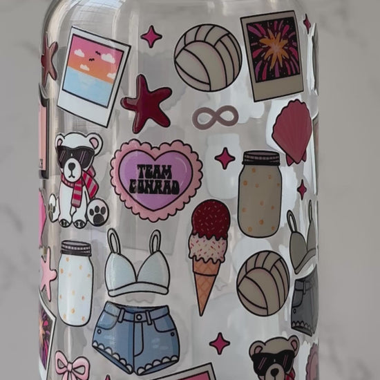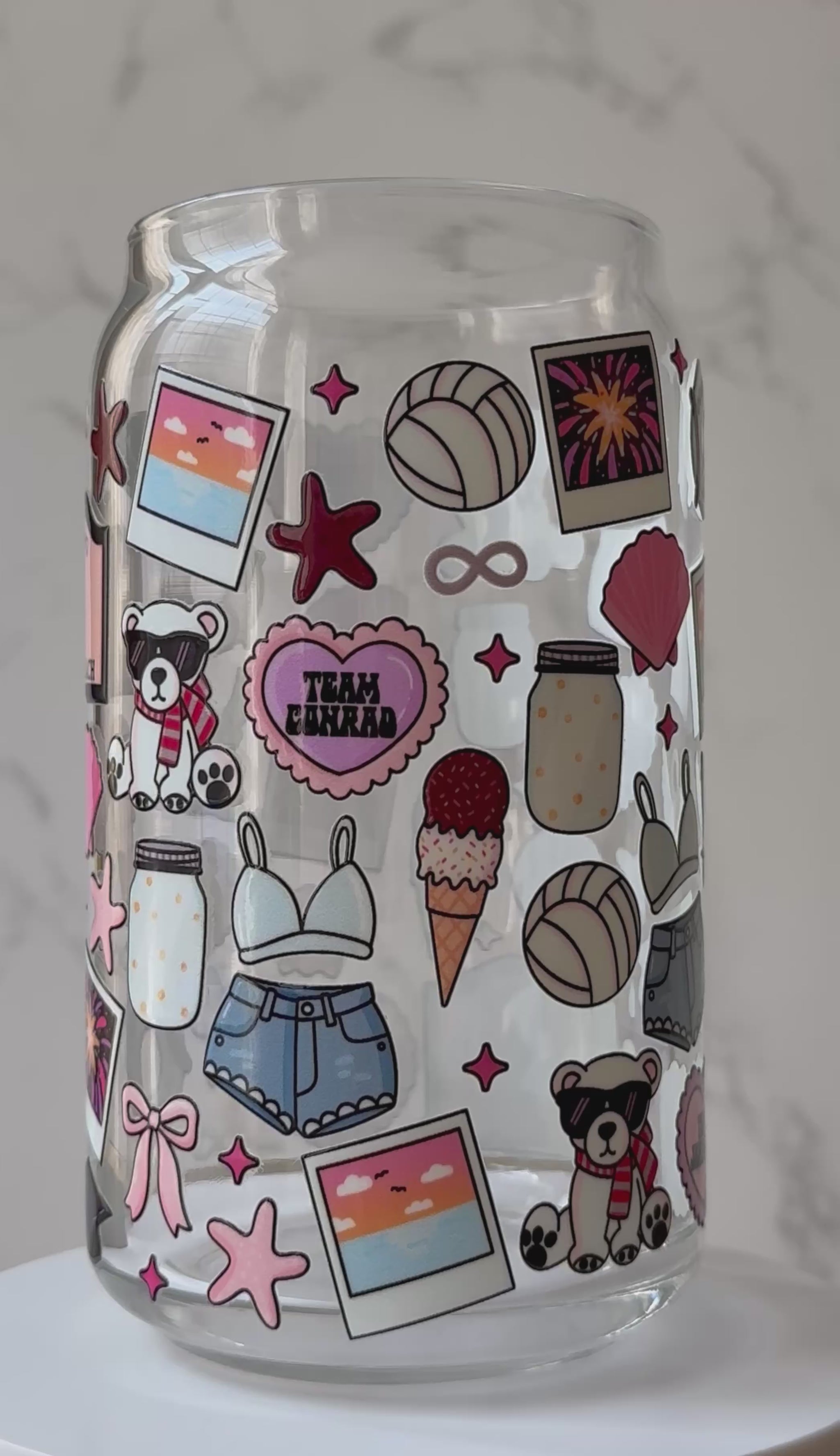 summer pretty glass cup | beachy aesthetic iced coffee cup | UV DTF summer drinkware | libbey summer cup | romantic beach drink cup | iced coffee glass with pastel graphics | reusable coastal tumbler | summer reading accessory | eco friendly summer cup | high quality uv dtf print | tsitp | beach cousins | team conrad cup | team jeremiah cup