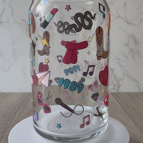 reusable iced coffee cup | libbey glass cup | UV DTF eras cup | swiftie glass cup | eras inspired iced coffee glass | taylor aesthetic drinkware | pastel swiftie tumbler | collectible eras cup | iced coffee for music lovers | high-quality uv-dtf print | 1989 | gifts for music lovers